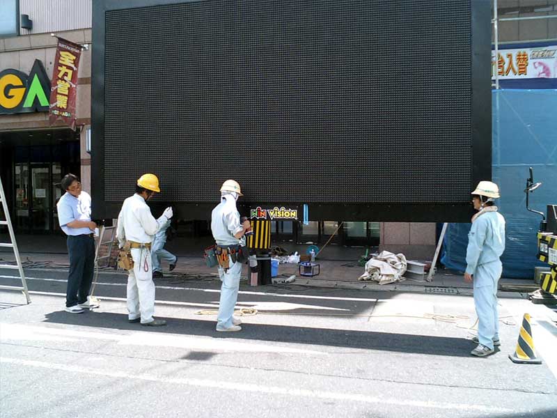 前を通りかかった方はお気づきになったと思いますが大型LEDビジョンを2面設置いたしました。