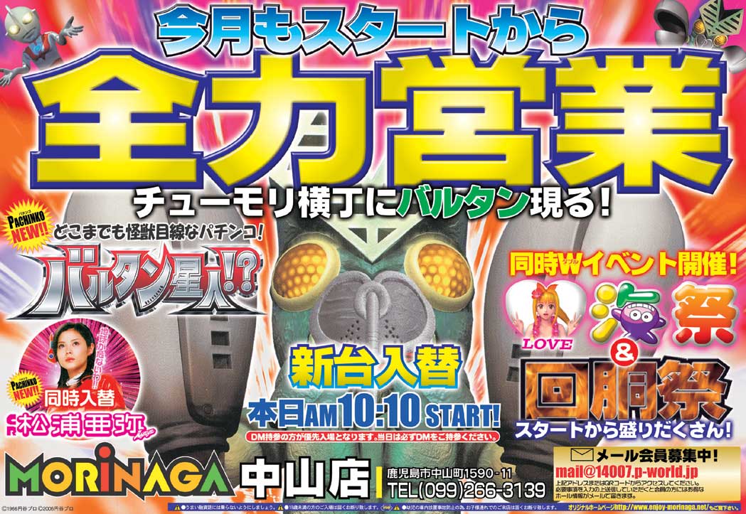 明日、11月1日、MORiNAGA中山店が新台入替して新装オープンです。