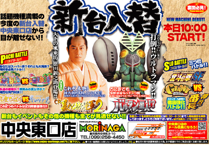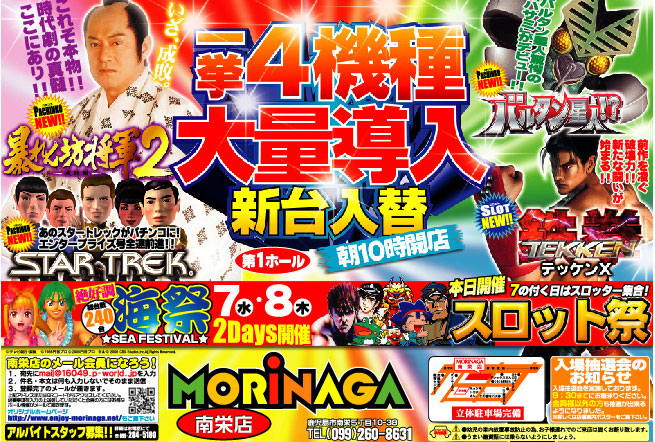 暴れん坊将軍2をはじめ話題の新台4機種を揃えた南栄店