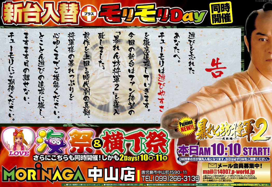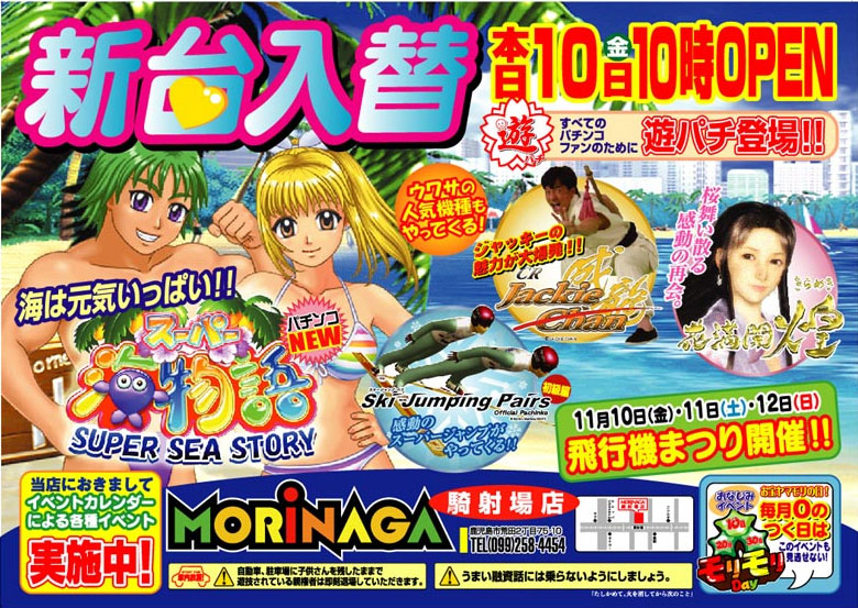 11/09 本日 MORiNAGA本店・草牟田店 新台入替